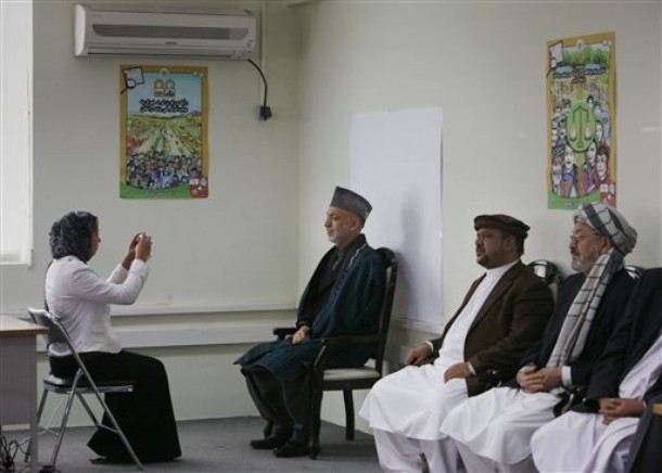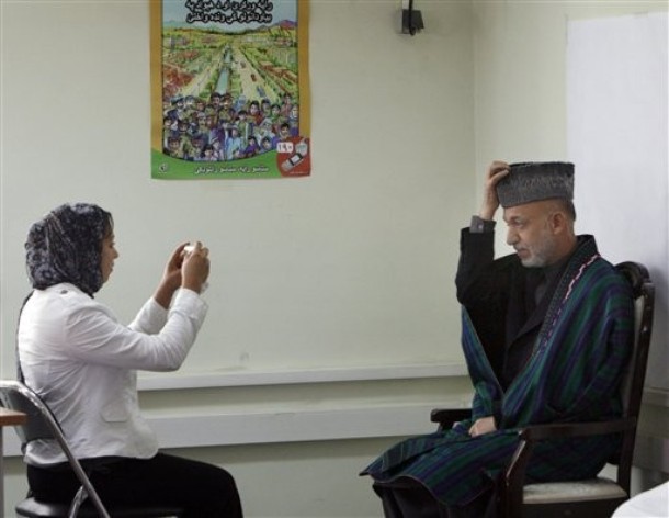 امروز حامد کرزی یار و همدم قاچاقچيان مواد مخدر، ناقضان حقوق بشر و دزدان دارایی های همگانی همراه با دو متهم نقض حقوق بشر کريم خليلی و قسیم فهيم در محل کميسيون مستقل (؟) انتخابات افغانستان حضور يافته و ثبت نام نمود.